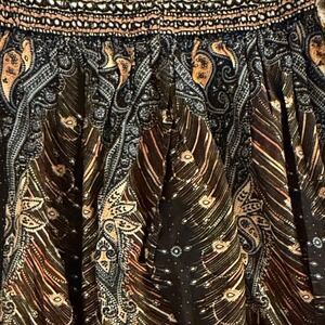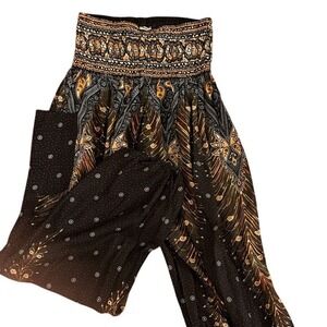 Banjamath Boho Peacock Feather Print Harem Pants Women's Size L Rayon