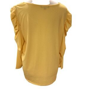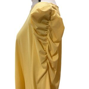 Adrianna Papell Polka Dot Blouse Stretchy Caterpillar 3/4 Sleeve Yellow White Lg