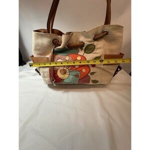 Fossil Colorful Satchel Boho Tote Purse Denim And Leather Unique ❤️