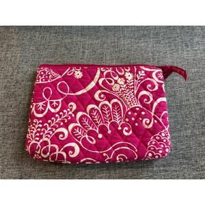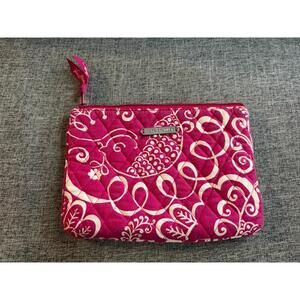 Vera Bradley Makeup Bag In Pink Twirly Birds Plastic Lined Zip Closure 9x6.5
