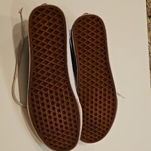 Classic Vans sneakers. Black canvas with white accents. Lace-up design. Comfortable and stylish. Good used condition. Van's Off the Wall black & white Sneakers. Women's size 11 & Men's size 9.5.