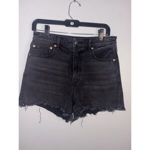 American Eagle Black Distressed High Waisted Denim Shorts Comfort Stretch Size 6