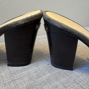 Elevate your style with these chic women's suede mules. Featuring elegant gold accents, these shoes offer both comfort and sophistication. Perfect for any occasion.