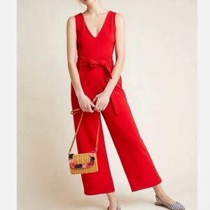 Anthropologie Cathy Structured Wide Leg Jumpsuit in red XS