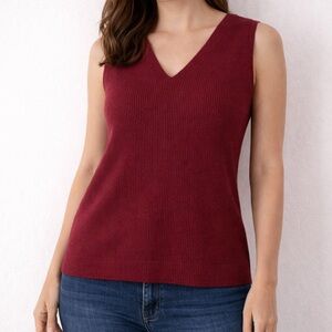 Emma James Sleeveless Knit Tank Top Maroon Ribbed V-Neck Made in Japan - L