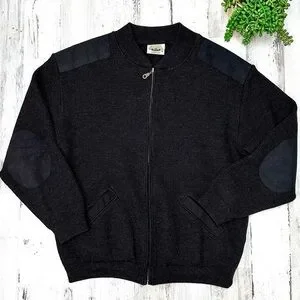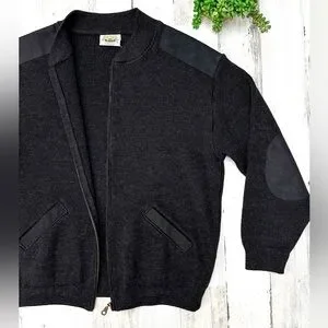 Aklanda Australian Dark Gray Merino Wool Shawl Zip Cardigan Mens Medium