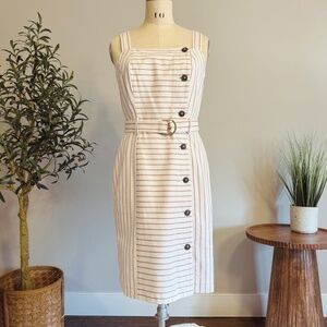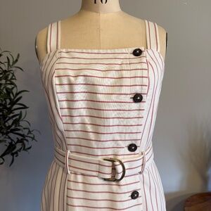 Tommy Hilfiger Dress Womens 4 Belted Cream Red Pinstripe Sheath Nautical Preppy
