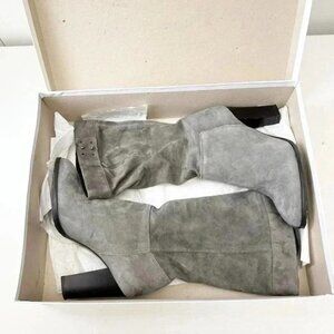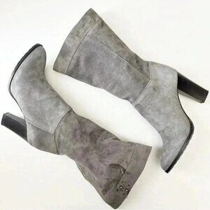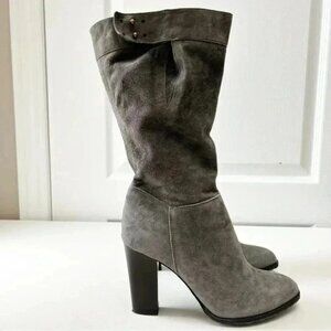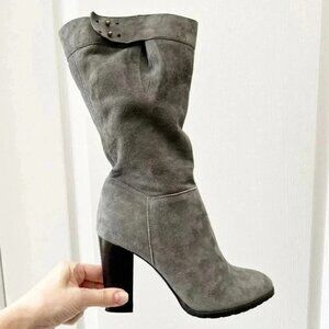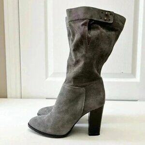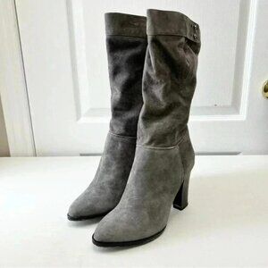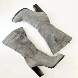 Grey Suede Boots Mid Calf Block Heel Slouch Boot Boho Size EU 38 NEW IN BOX