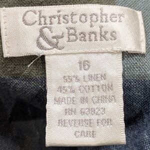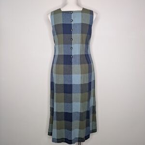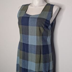 Christopher & Banks Blue Green Plaid Stripes Sleeveless Square Neck Midi Dress 16. Linen & cotton blend. Great condition.