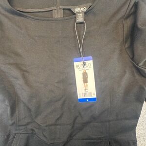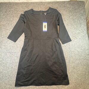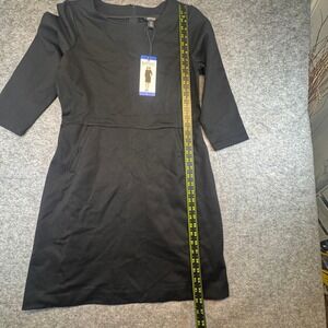 Buffalo David Bitton Luxe Ponte Dress Womens Large Black 3/4 Sleeve Pockets NEW