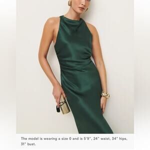 Elevate your wardrobe with the effortlessly chic Reformation Anaiis Silk Dress in a rich forest green hue. Crafted from 100% silk, this dreamy midi dress features a flattering bias-cut silhouette that drapes beautifully on the body, making it perfect for weddings, date nights, or special occasions.