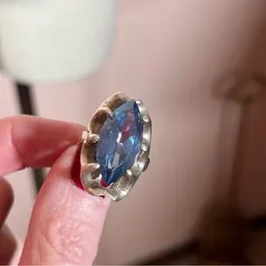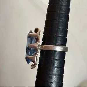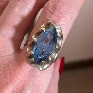 Antique art Deco Oversized Marquee Blue Topaz Brutalist Sterling Silver Ring