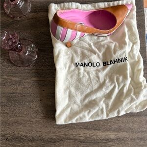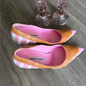 Manolo Blahnik Pink & Tan Pointed Toe Leather Pumps