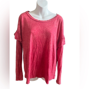 Honey Belle Red Ruffled Long Sleeve Tee S