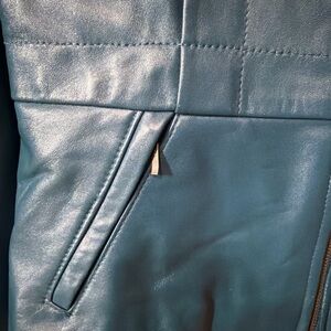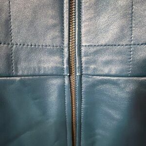 Alfani Teal Blue Leather Zip Jacket