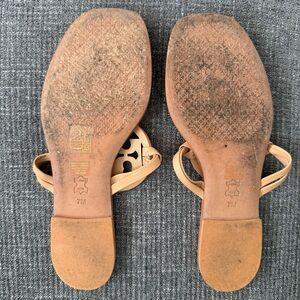 Tory Burch Miller Square Toe Sandals Beige Natural Vachetta Leather Size 7