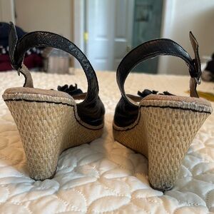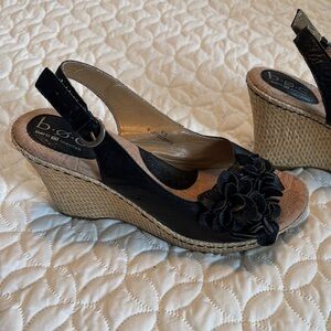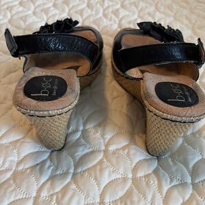b.o.c. Black Espadrille Slingback 3.5” Straw Woven Heels Shoes Floral Sandals