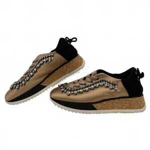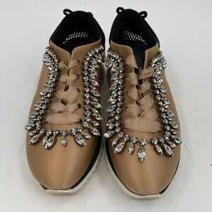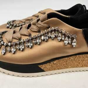 Judari Tan Black Rhinestone Satin Sneakers | EU 38 (7 US)
