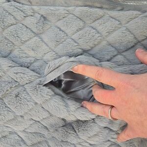 Elegant gray faux fur vest. Ideal for chic layering.