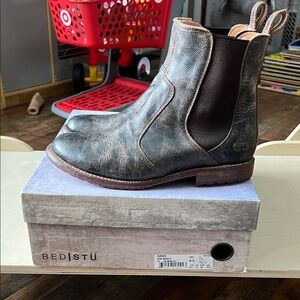 BED|STU Distressed Dark Brown Leather Chelsea Boots with Black Elastic
