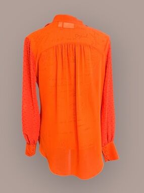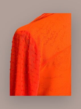 Fabric: Made from lightweight, sheer 100% polyester, revealing a subtle dot texture on the sleeves.