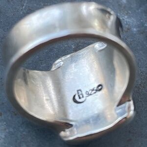 This is a gorgeous, southwestern-style vintage 925 sterling silver ring by designed Carolyn Pollack w/ a rectangle center stone that features a carved flower. It is size 8.