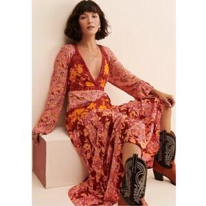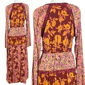 Free People Bohemian Retro 70s Gypsy Floral Tilda Maxi Dress Size Medium