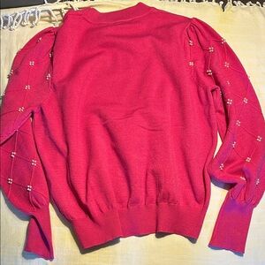 Nanette Lepore Women’s Pink Puff-Sleeve Sweater with Pearl accents