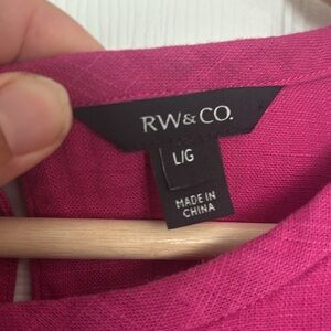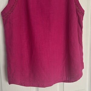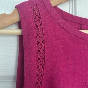 Beautiful linen blend tank top from RW & Co. Gorgeous shade of fuchsia pink with delicate lace detail and keyhole closure in back.