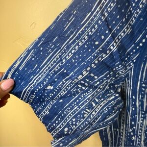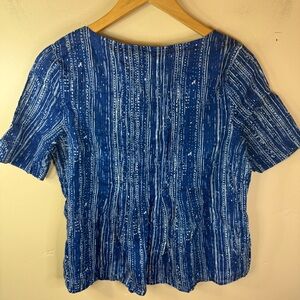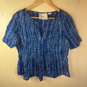 Anthropologie Maeve Boho Blue Island Orchid Split Neck Blouse Size US 6