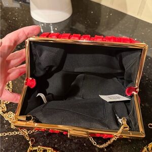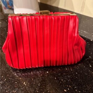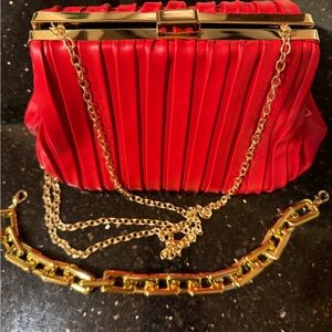 NWT A winner Red Pleated Clutch with Gold Chain Handle
