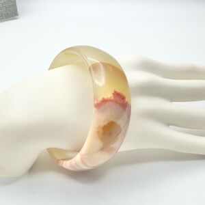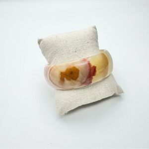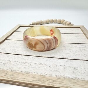 Vintage Mexico Natural Agate Quartz Mixed Color Bangle Bracelet Stamped