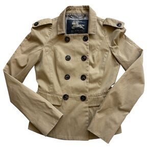 Burberry London Cropped Trench Jacket S Tan Cotton Italy Made Double Breasted