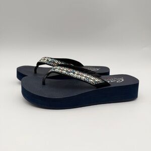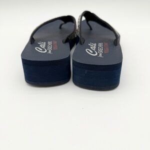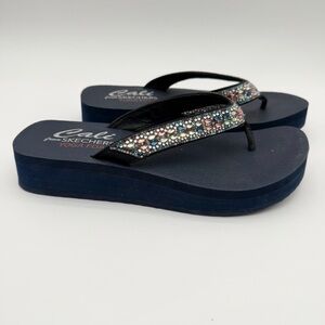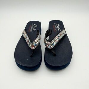 Skechers Cali Yoga Vinyasa Wild Daises Wedge Thong Sandals Rhinestone Navy Color. Size 9. Gently used. Great condition.