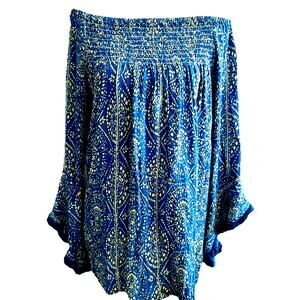 Boho smocked tunic fairycore cottage coquette Fringe Festival blue flowy gypsy L
