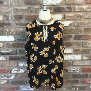MODCLOTH Black Mustard White Floral Sleeveless Tie Neck Top XL