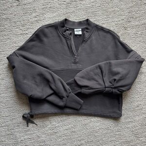 Cozy cropped sweatshirt. Features a half-zip design. Perfect for casual wear.
