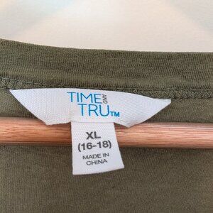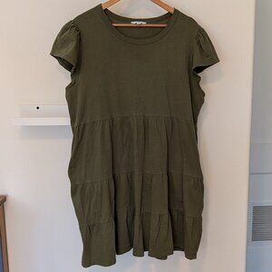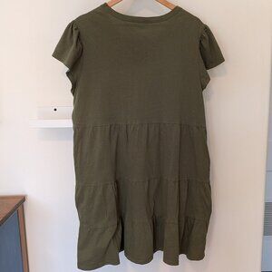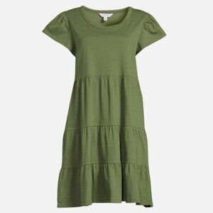 Time & Tru 100% Cotton Tiered Knit Dress Women's XL 16-18 Olive Green w Pockets