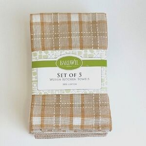 NWT Set Of 5 Woven Kitchen Towels 16" x 26" Khaki Natural Neutral Themed Colors