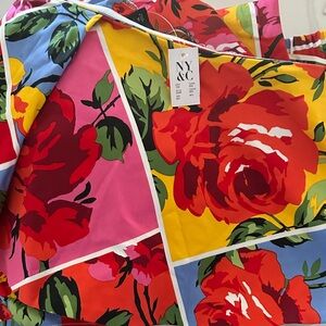 New York & Company Yellow Multi Floral Patchwork two piece crop top pantsuit