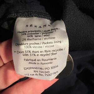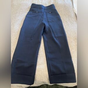 Sézane Damon Trousers - Tailored straight-leg dress pants. Clean front crease and cuffed hem. Versatile navy color for work or events. US size 6. French sizing is 38.