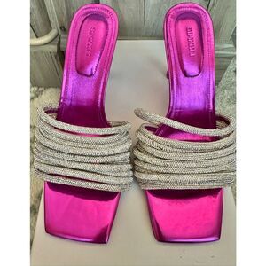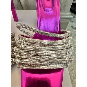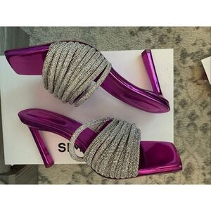 Condition: New in box. A few crystal have fallen off. Extra crystals and heels are in box. Retails $545.