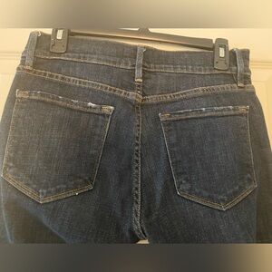 Frame Le Garçon crop Jean, Size 26. Fun and funky with great distressing in just the right spots. Well loved and taken care of. In very good condition. Dark wash.