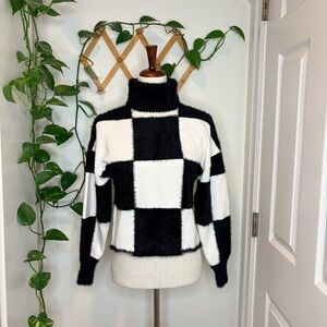 STAUD Benny Checkerboard Turtleneck Sweater