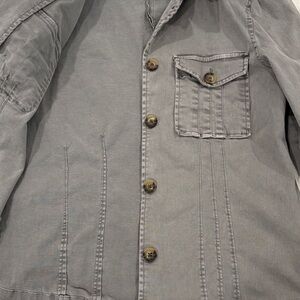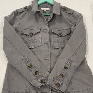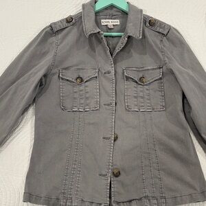 Knox Rose Military Style Jacket Sz Med. Pockets Utility Stretch Jean Stylish gray utility jacket by Knox Rose. Features button front and chest pockets. Ideal for casual wear.