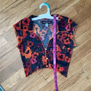 Urban Outfitters Funky Floral Mesh Button-Up Crop Top