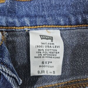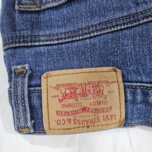 Classic Levi's bootcut jeans. Deep indigo blue wash. Subtle fading and contrast stitching. Five-pocket style with button fly. Timeless casual silhouette.