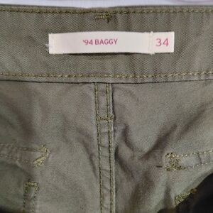 Vintage inspired mid-rise, loose through hip and thigh. Adjustable bottom hem.
