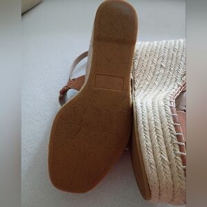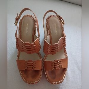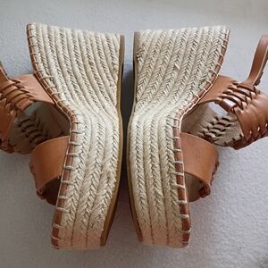 Veronica Beard Tan Braided Leather Espadrille Wedge Sandals