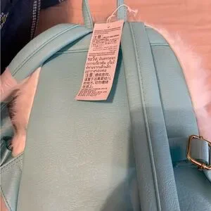Loungefly White Furry Yeti Backpack with Pink and Blue Goggle Patch